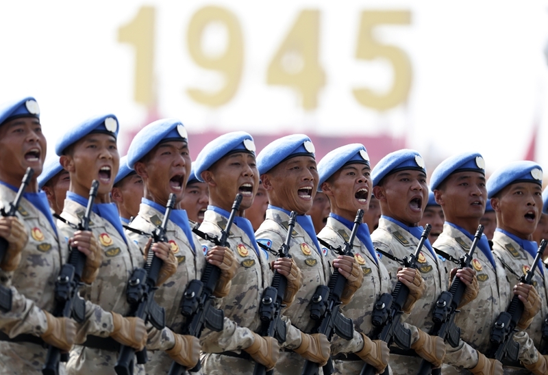 2025年9月3日,纪念中国人民抗日战争暨世界反法西斯战争胜利80周年大会在北京隆重举行。这是维和部队方队接受检阅。新华社记者 李明 摄