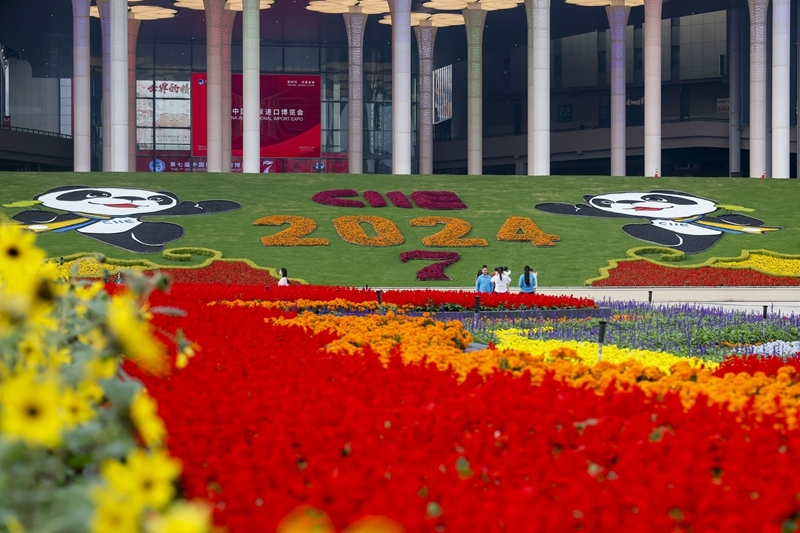 2024年11月4日拍摄的第七届中国国际进口博览会举办场地——国家会展中心(上海)外景。新华社记者 王翔 摄
