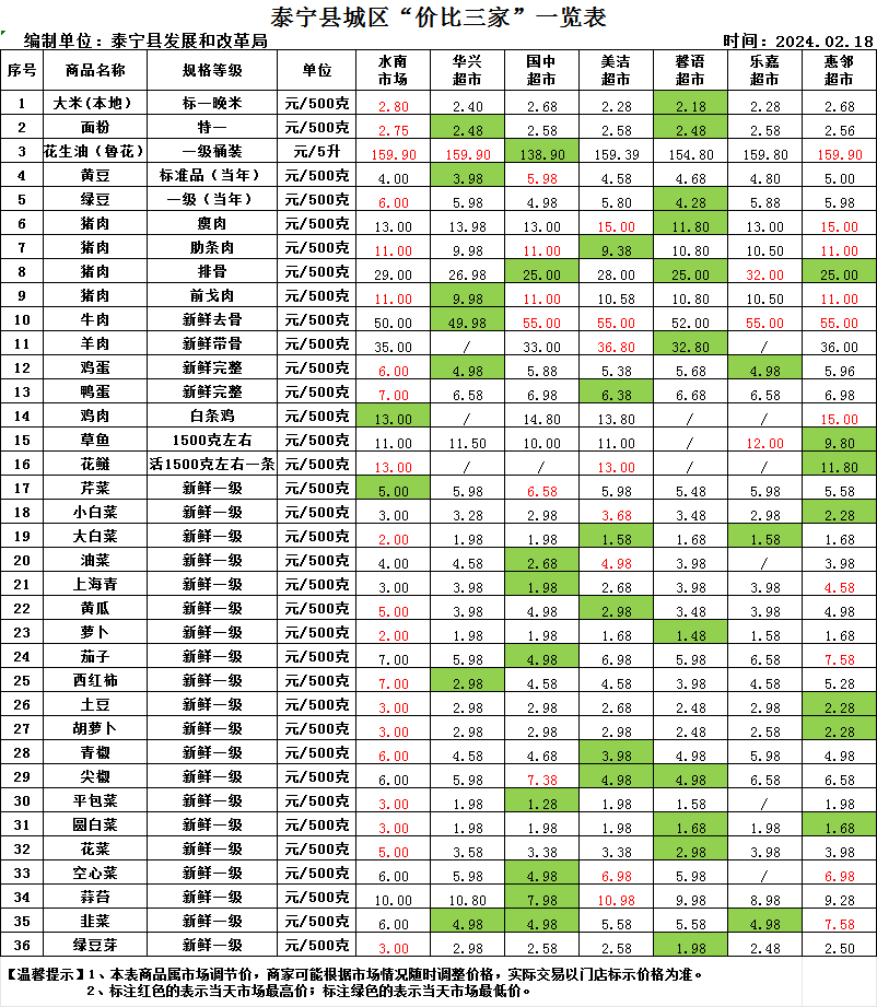 泰宁县城区“价比三家”一览表
