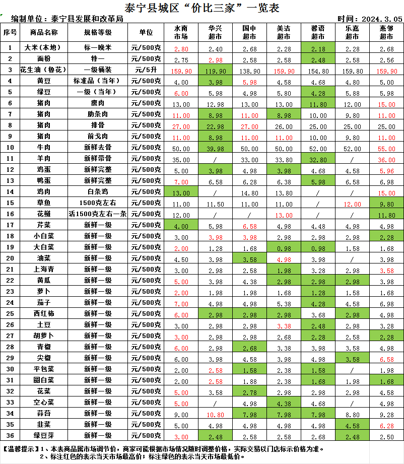 泰宁县城区“价比三家”一览表