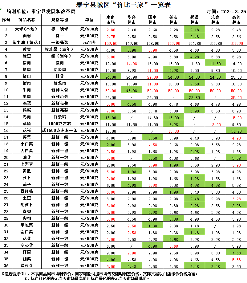 泰宁县城区“价比三家”一览表
