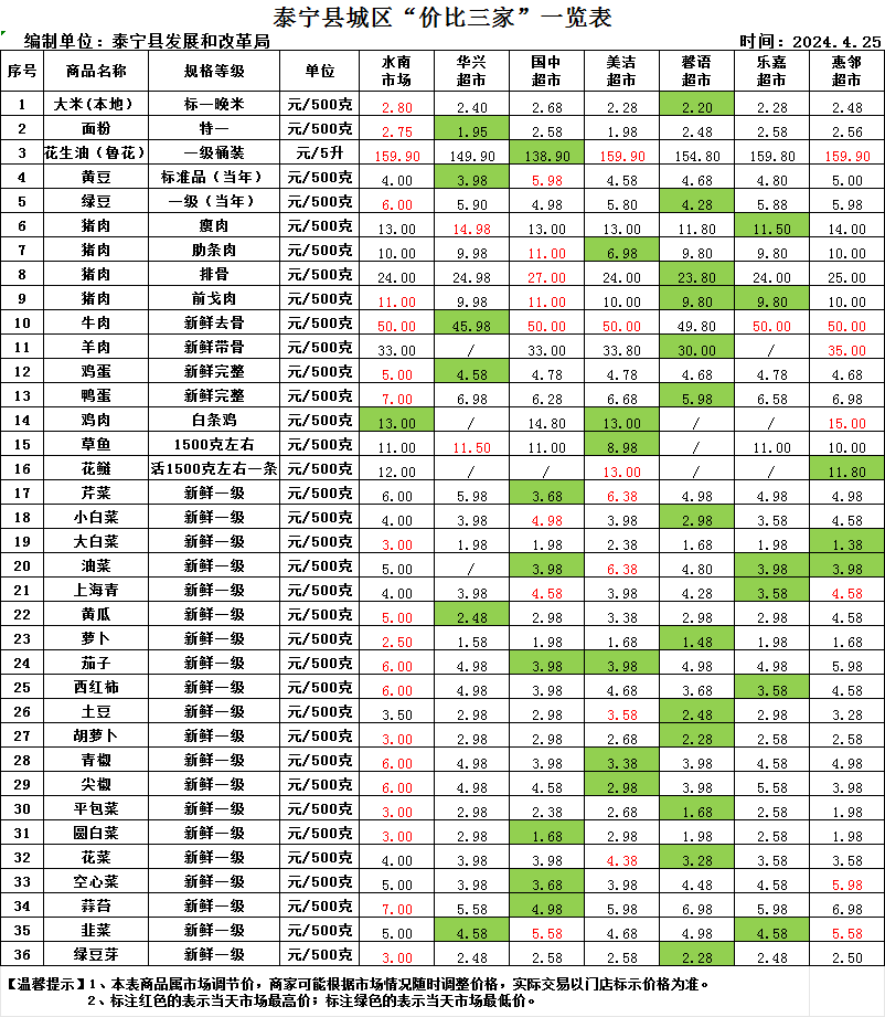 泰宁县城区“价比三家”一览表
