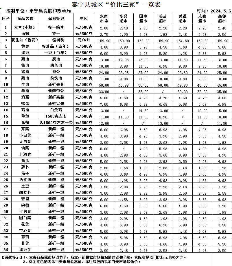 泰宁县城区“价比三家”一览表