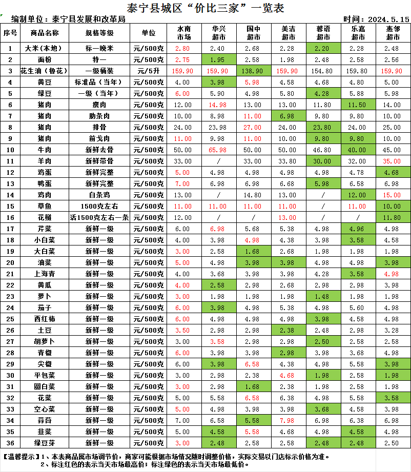 泰宁县城区“价比三家”一览表