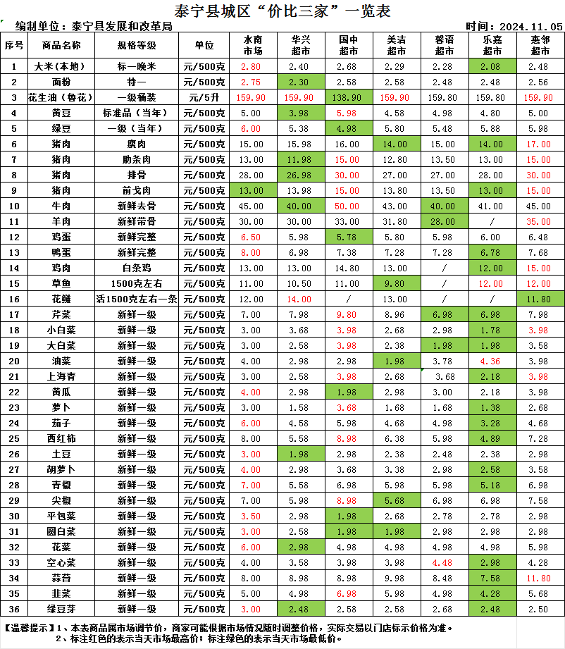 泰宁县城区“价比三家”一览表