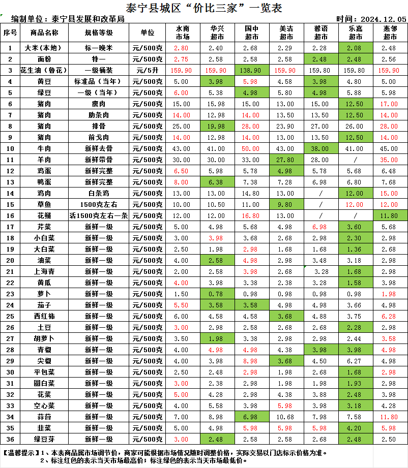 泰宁县城区“价比三家”一览表