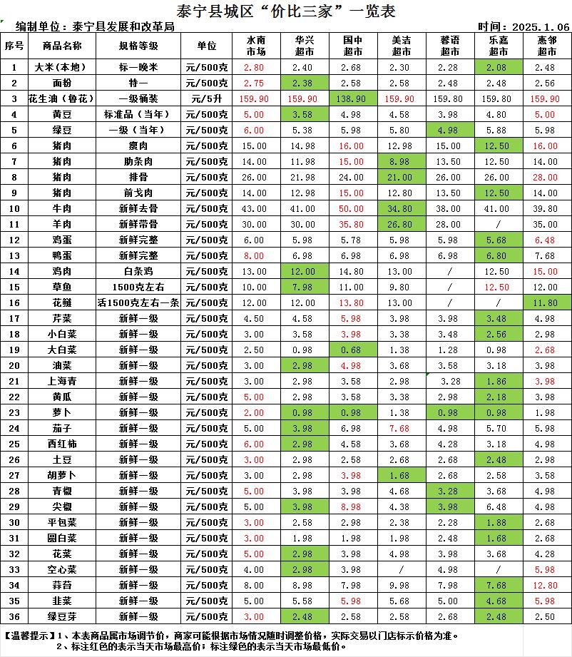 泰宁县城区“价比三家”一览表