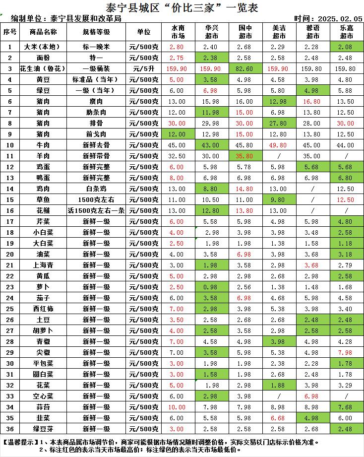 泰宁县城区“价比三家”一览表