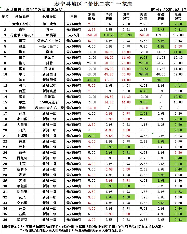 泰宁县城区“价比三家”一览表