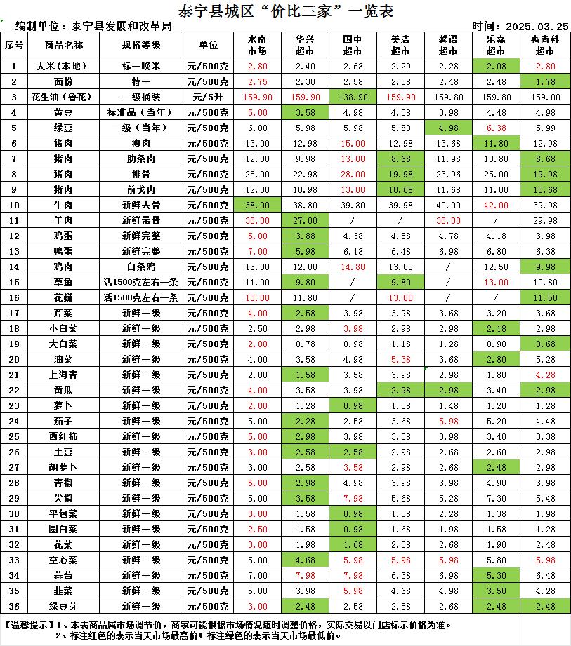 泰宁县城区“价比三家”一览表