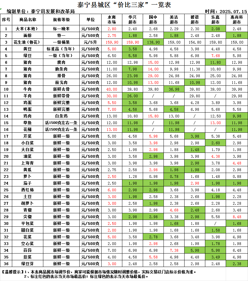 泰宁县城区“价比三家”一览表7.15