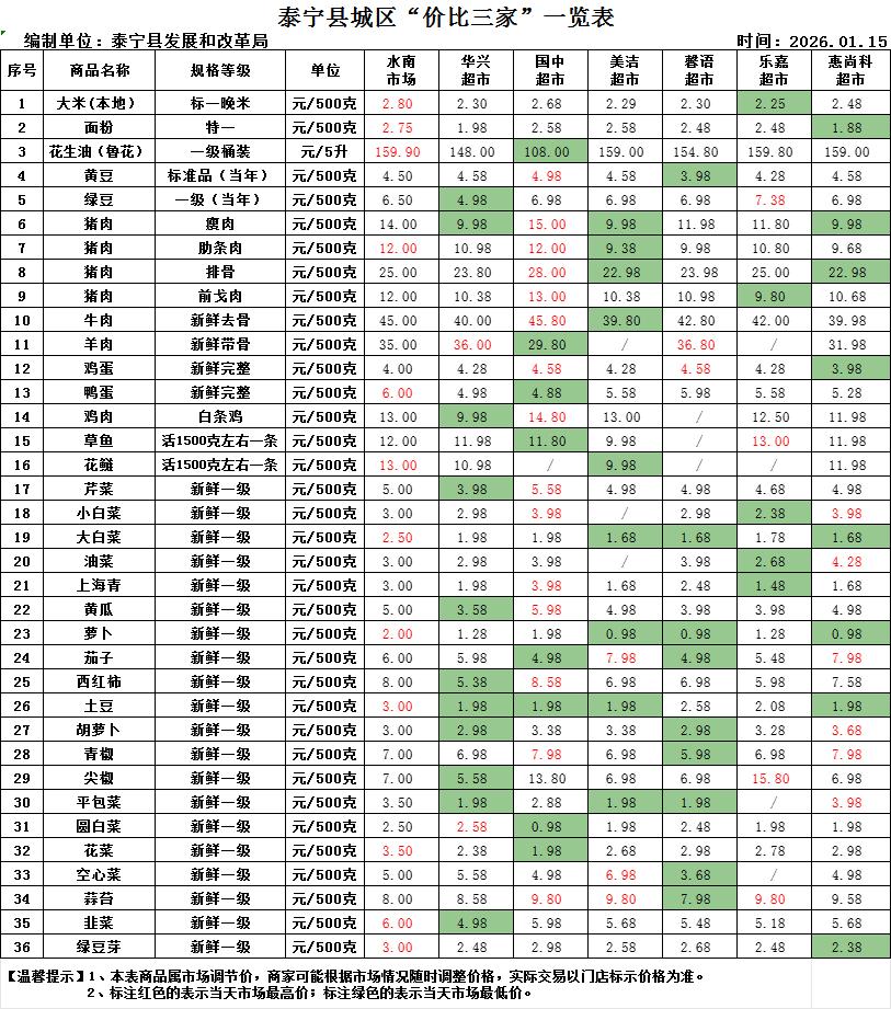 泰宁县城区“价比三家”一览表01.15