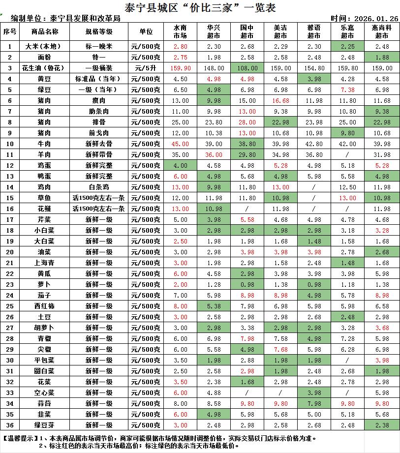 泰宁县城区“价比三家”一览表01.26